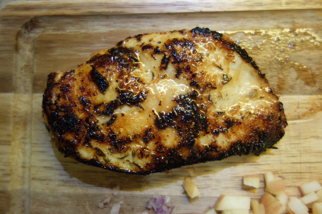Start by marinating your chicken if desired. I marinated mine in some Greek yogurt with pickle juice and seasonings. Then, cook your chicken breast (pan seared, baked, or grilled all work well).
